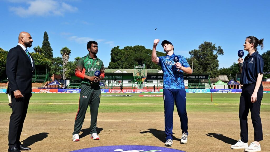 আইসিসি অনূর্ধ্ব-১৯ ওয়ানডে বিশ্বকাপের সুপার সিক্স পর্বে নিজেদের প্রথম ম্যাচে ইংল্যান্ডের মুখোমুখি হচ্ছে বাংলাদেশ। টস জিতে আগে ব্যাটিংয়ের সিদ্ধান্ত নিয়েছে যুবা টাইগাররা। জিম্বাবুয়ের বুলাওয়েতে অনুষ্ঠিত ম্যাচটি বাংলাদেশ সময় দুপুর ১টা ৩০ মিনিটে শুরু হবে।