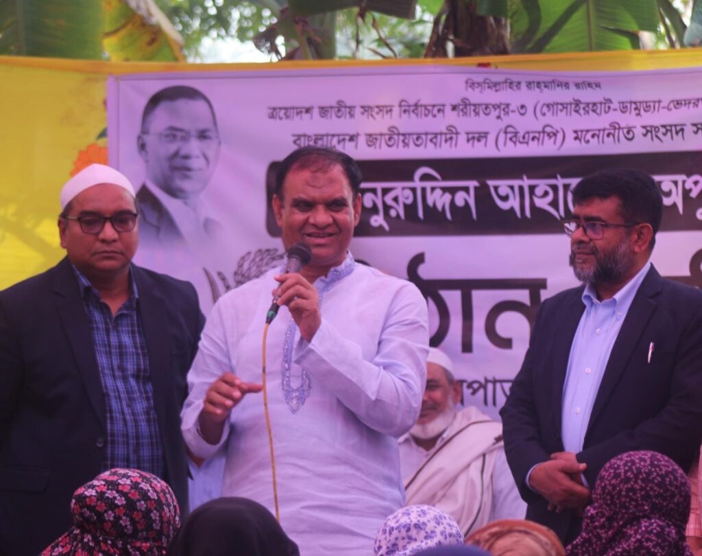 আসন্ন ত্রয়োদশ জাতীয় সংসদ নির্বাচন উপলক্ষে শরীয়তপুর–৩ (গোসাইরহাট, ডামুড্যা ও ভেদরগঞ্জ) আসনের বাংলাদেশ জাতীয়তাবাদী দল (বিএনপি) মনোনীত প্রার্থী মিয়া নুর উদ্দিন অপুর উঠান বৈঠক ও জনসংযোগ অনুষ্ঠিত হয়েছে।